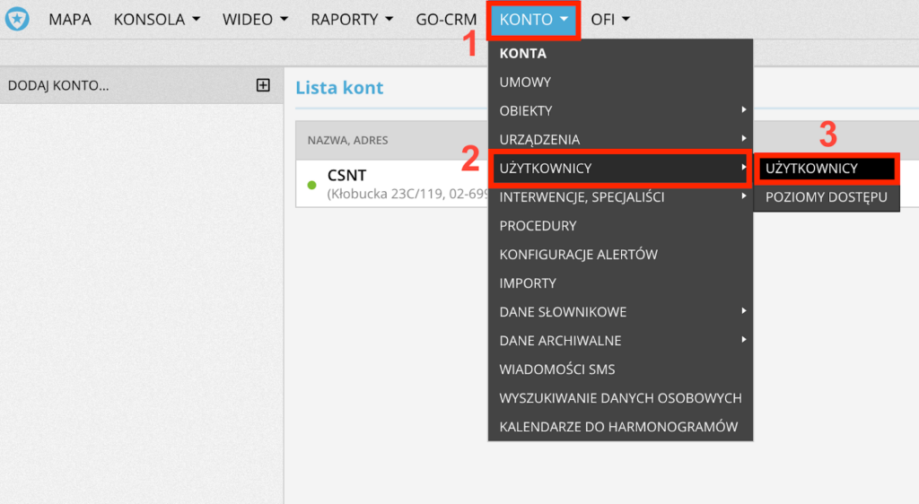 - Z modułu głównego wybierz zakładkę KONTO -> UŻYTKOWNICY -> UŻYTKOWNICY, a następnie z listy osób wybierz użytkownika, dla którego chcesz włączyć 2FA.