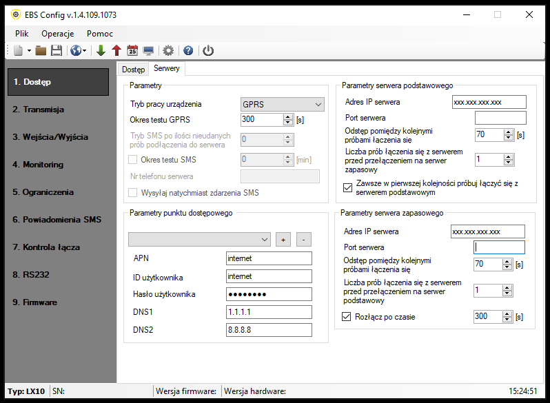 W programie EBS Config należy przejść na zakładkę Dostęp -> Serwery i jednostki: