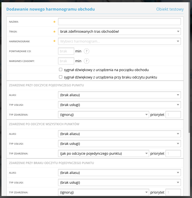 Następnie wyświetlony zostanie formularz dodawania nowego harmonogramu obchodu