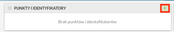 Aby dodać punkt do systemu należy nacisnąć na ikonę “+” w kolumnie “PUNKTY I IDENTYFIKATORY”