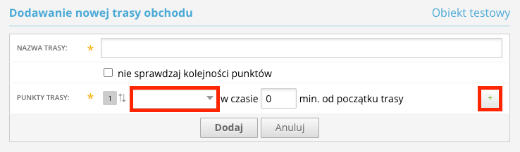 Następnie wyświetlony zostanie formularz dodawania nowej trasy obchodu